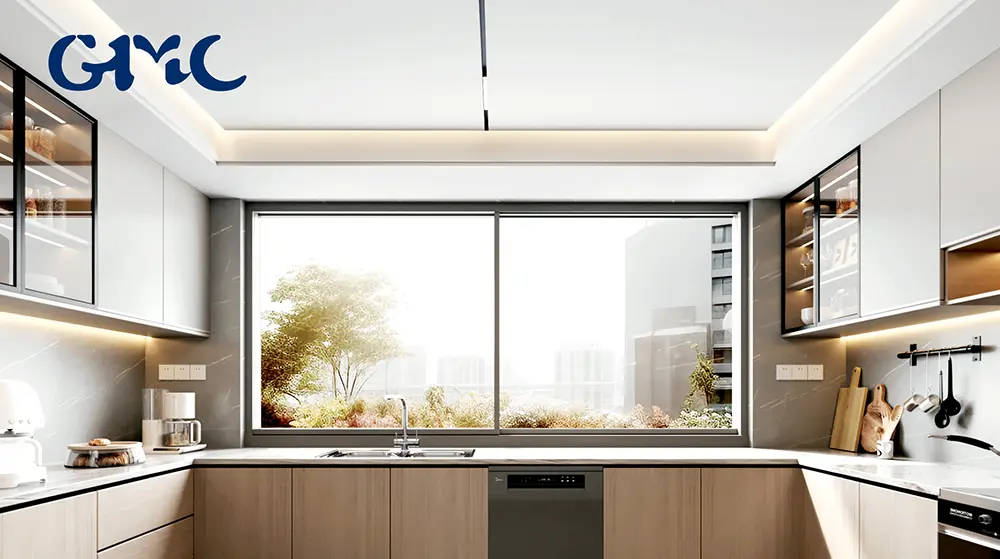 Guohua Construction voi tarjota erinomaisen ikkunan integroidusta taivutetusta fluorihiilimustista ontoista alumiininauhasta, joka on suosittu keittiössä, alumiiniprofiilin paksuus: 2,0 mm ja kuuluisan tuotemerkin "XinYi" karkaistu lasi. Sivulla automaattinen itsekehityslukko korkealaatuisilla ja kotimaisilla tuotteilla sekä ammattimainen alumiiniprofiilin pintakäsittely hapetusmenetelmällä.